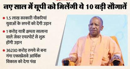 उत्तर प्रदेश के लिए वर्ष 2026 नई उम्मीदों और शानदार बदलावों का साल साबित होगा। युवाओं को डेढ़ लाख सरकारी नौकरियों से लेकर गंगा एक्सप्रेसवे, जेवर एयरपोर्ट, पांचवां भूमि पूजन समारोह, वैश्विक निवेश, स्वास्थ्य और सुरक्षा क्षेत्र में प्रदेश को 10 बड़ी सौगातें मिलेंगी। ये न सिर्फ प्रदेश के आर्थिक विकास को रफ्तार देंगी, बल्कि आम लोगों का जीवन भी सुविधाजनक बनाएंगी।