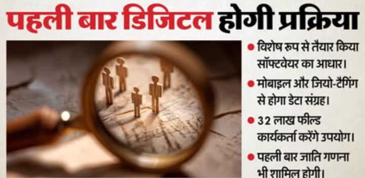 भारत में आबादी की गिनती का तरीका अब पूरी तरह बदलने जा रहा है। घरों की दीवारों पर खड़िया या कोयले या फिर गेरू से निशान लगाने का दौर अब इतिहास बन चुका है। अब होने वाली जनगणना में तकनीक का ऐसा दखल होगा कि कागज-कलम की जगह मोबाइल ऐप, टैबलेट और हाई-टेक सर्वर लेंगे। इस बार की जनगणना न केवल डिजिटल होगी बल्कि आंकड़ों की सुरक्षा के लिए इसमें अभेद्य साइबर कवच भी तैयार किया गया है। पिछली जनगणना (2011) में लगभग 8577 मीट्रिक टन कागज और हजारों लीटर स्याही का इस्तेमाल हुआ था।