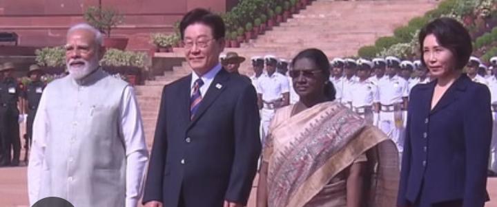 दक्षिण कोरियाई राष्ट्रपति ली जे म्यूंग भारत दौरे पर हैं। सोमवार को राष्ट्रपति भवन प्रांगण में उनका औपचारिक स्वागत किया गया। राष्ट्रपति द्रौपदी मुर्मू और प्रधानमंत्री नरेंद्र मोदी ने दक्षिण कोरिया से आए राजकीय मेहमानों का गर्मजोशी से स्वागत किया। इसके अलावा, कोरियाई राष्ट्रपति ली ने राजघाट जाकर पर महात्मा गांधी को श्रद्धांजलि भी अर्पित की।